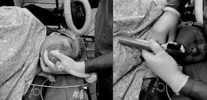 As an additional measure to prevent spillage, we try to keep the affected lobe most dependent till the time the lobar isolation is complete. For this, careful patient and table positioning is required to prevent gravity dependent spillage. In this process, sometimes tracheal intubation in the lateral position might also be required (Figure 8). In our experience intubation in the lateral position is not very difficult in experienced hands. In fact, as the tongue falls down due to gravity, the laryngoscopic view is often better. However, in case of difficulty patient should be made supine immediately and managed further as per difficult airway guidelines.