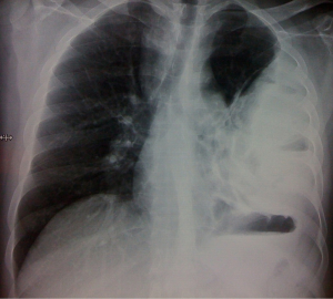 Empyema thoracis (Figures 2,3) can be a complication of pneumonia, tuberculosis or various iatrogenic pulmonary interventions. Despite widespread use of highly effective antibiotics, chronic empyema thoracis (CET) is common worldwide. Corrective procedures like tube thoracostomy, image directed catheters, thoracoscopic drainage, decortication and open drainage have all been employed with success rates varying between 10% to 90% (12). VATS has shown promising results in decortication and adhesiolysis. Perioperative bleeding and air leak are the main concerns in extensive adhesiolysis and decortication. Modern electronic chest drainage systems with suction capability are a boon as it gives the estimate of air leak, drain, helps in lung expansion and early mobility. Talc pleurodesis is employed in an effort to prevent recurrence in patients with repeated effusions.