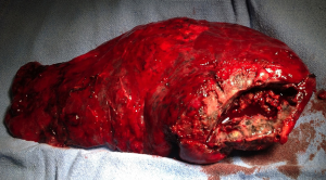These images demonstrate that the degree of complexity of pulmonary pathology is very challenging in the developing world. Late presentation to the clinician and non compliance to treatment regime are the main causes of such complex case scenarios. Due to late presentation the disease distorts the pulmonary anatomy and physiology. Lung collapse, atelectasis, adhesions, loculated effusions, thick cortex for decortications are frequently encountered. The amount of perioperative blood loss and risk of septicemia are very high.