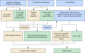 Algorithm for the pulmonary metastasectomy based on number of metastases and histology