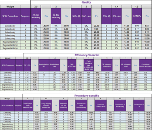 Changing and/or improving physicians’ practices is challenging. Too many of us adhere to dogma and practice how we were trained as opposed to how we can best practice now. Most do not see the need to change because our results are already quite good. Moreover, when asked to consider it, we too often hide behind the “safety card” to avoid change. The administrative report cards that we provide to our physicians are to inspire change and to improve patient care. Yet, they are often met with suspicion. We too often hear, our physicians say, “Your data is wrong”, “You measure the wrong quality metrics” and “You are comparing apples and oranges”. We hear, “You administrators do not fully understand and cannot objectively measure the complexities of my practice”. We hear, “I have been doing this my whole life, no-one does this better than me”, “I have a vast life-time experience” and “I am the world’s experts”. For these reasons, we created, vetted, published and now have validated the Efficiency Quality Index (EQI) (1). The EQI by definition only compares physician’s performance for similar task and only measures quality indices that the physicians themselves decide that are the best surrogates of quality and that they choose to compare (2). They are different for each specific task, operation or codes. In addition, the physician receives their dataset and can correct or amend it. However, data changes only occur after they are vetted with their colleagues that their scores are compared. Then the entire group agrees on which data should be included and/or changed. The various metrics are scored and then weighted (as shown in Figure 1) and then tabulated and the total EQI scores are then provided (as shown in Figure 2) for each provider. In addition, we add Citizenships Scores to the total procedure specific EQI scores. Once the scores are verified, the physician’s performance is compared in an open, transparent, fun collaborative forum. The main import of that meeting is not only to celebrate the high achievers but also to stimulate a conversation on how we can all get better together. Neither bonus nor salary is considered with the EQI and there are no pecuniary concerns connected to it.